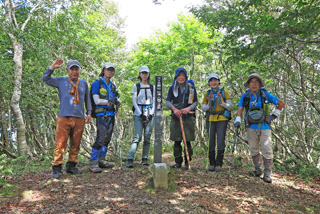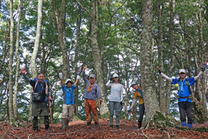 最初からの急登にあえぎながらも、全員元気で御殿山へ。西南稜から山頂に続く道にパワーをもらい、全員無事に山頂に立つことが出来ました。