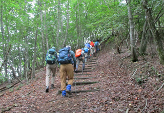 今回の山行は、下ってから登り返す逆登山。昼食後は、皆さんに試練が待っていましたが、皆さん、頑張って山頂まで戻って頂けました。